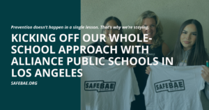 Over the next three years, we’ll be working closely with these campuses to fully implement our Whole-School Approach to dating violence prevention. That means training educators, supporting student-led SafeBAE chapters, and making sure conversations about consent, boundaries, and healthy relationships are happening everywhere—not just in health class.