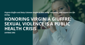 As we honor Virginia’s memory, we also remember another young hero—Daisy Coleman—whose own survival story sparked the founding of SafeBAE. Both women endured unimaginable trauma as teenagers, turned their pain into powerful advocacy, and showed us what it means to fight for change. Yet their untimely losses remind us that sexual assault is not only a crime—it’s a life-threatening crisis with repercussions that can last a lifetime, even for those who become our fiercest defenders.