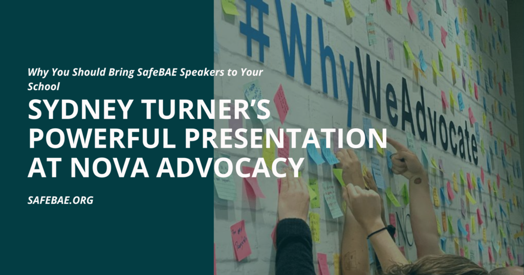 Sydney Turner, SafeBAE’s Director of Outreach and Education, delivered an impactful presentation at the NOVA Visionaries of Advocacy Conference in Washington, DC. With attendees from across the country, the event highlighted SafeBAE’s unique focus on youth-led sexual violence prevention, restorative justice, and innovative approaches to school policy reform.
